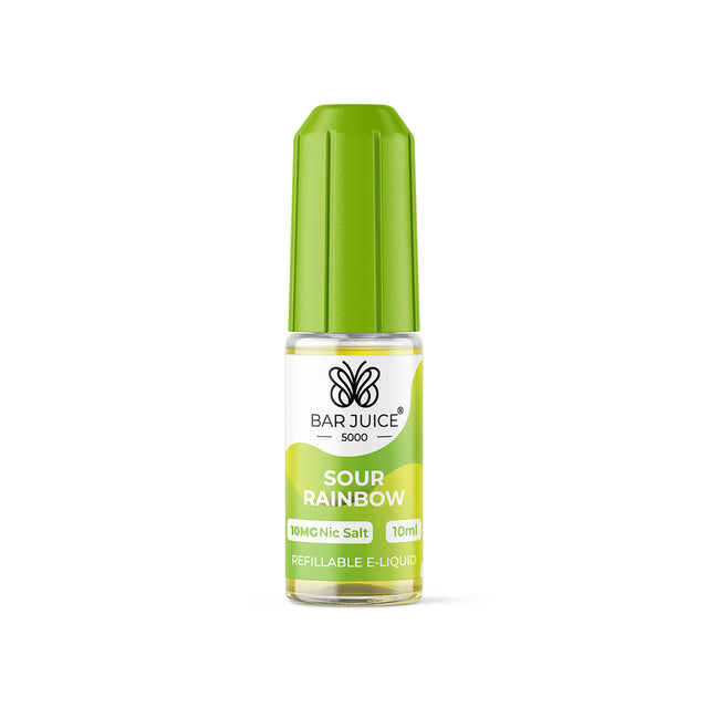 Sour Rainbow nicotine salt e-liquid by Bar Juice 5000 features a candy-inspired blend with a tangy twist, enhancing sweet and fruity flavours with a tart base note for an exciting vape experience.
